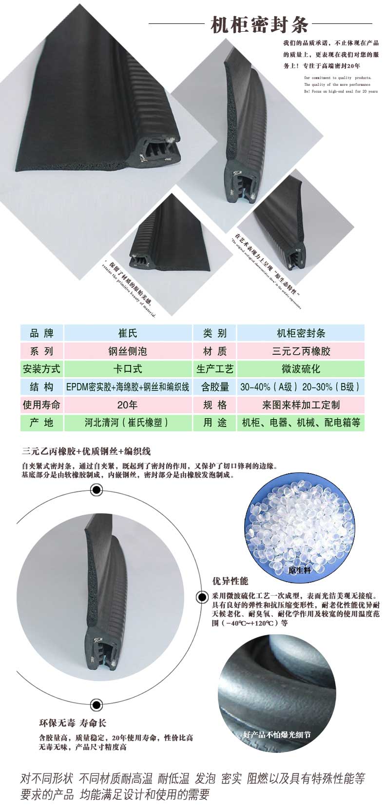 崔氏機柜密封條產品優勢: