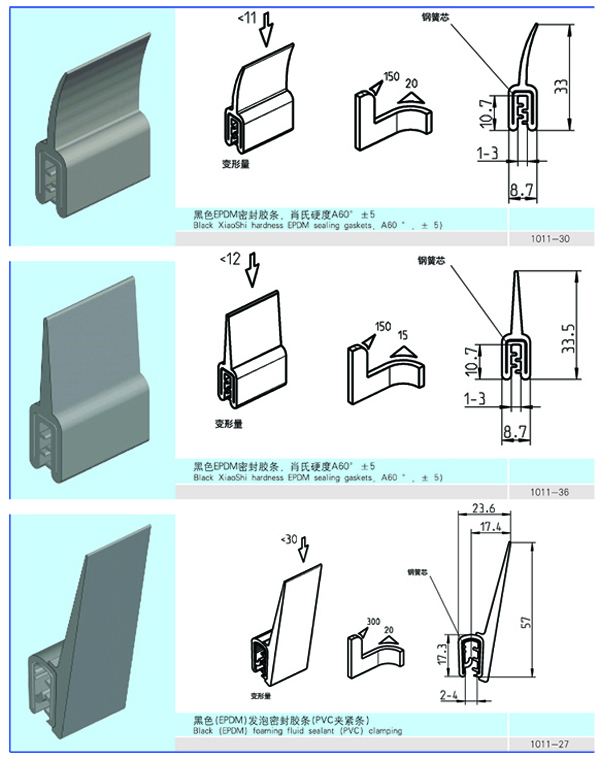 此機柜密封條是由具有良好彈性和抗壓縮變形、耐老化、臭氧、化學作用、較寬的使用溫度范圍(-40℃~+120℃)的三元乙丙橡膠(EPDM)橡膠發泡與密實復合而成,內含獨特的金屬夾具和舌形扣,堅固耐用。在各種機柜上起著很關鍵的作用。