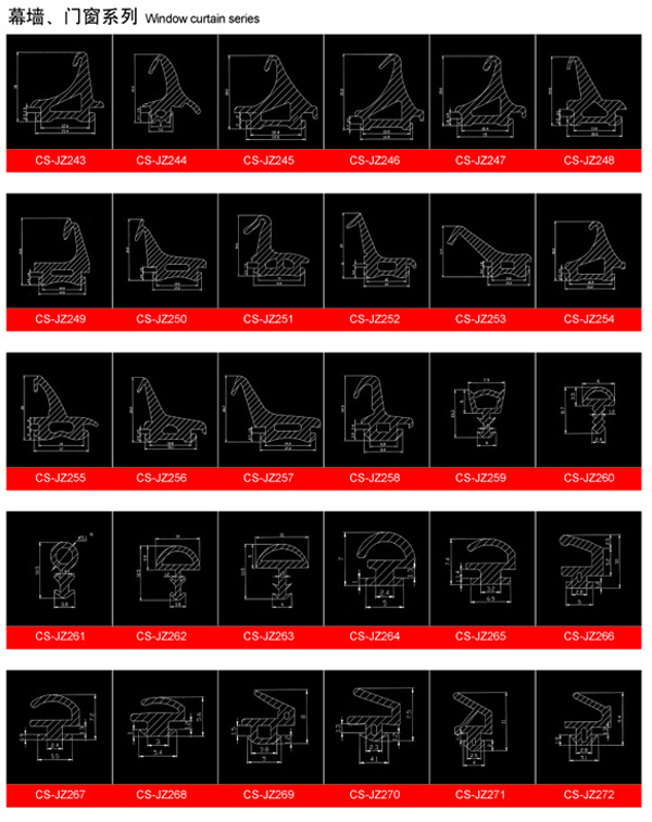 GB12002-89《塑鋼門窗用密封條》 GB320 281NAF05-2000《建筑幕墻用硫化橡膠密封條》 |