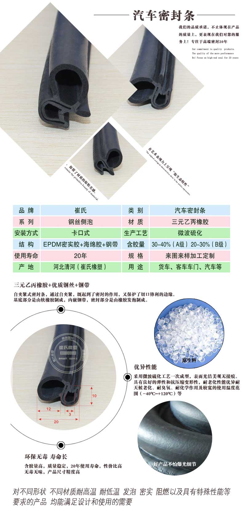 5 20年使用壽命,解決汽車密封條經(jīng)常更換的麻煩。