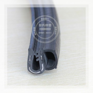 產品結構:門 框密封條不但要保證密封性,還要承受關門時的沖擊力,因此它既要有彈性,也要有韌性,主要由密實膠基體和海綿膠泡管兩部分組成。密實膠內含有金屬骨架,起 到加強膠條的定型和固定作用。海綿膠泡管柔軟并富有彈性,起著受壓變形,卸壓反彈的功能。此外,有一些密封條的唇邊部分由彩色膠構成或者貼有織物,色調美 觀有裝飾作用。