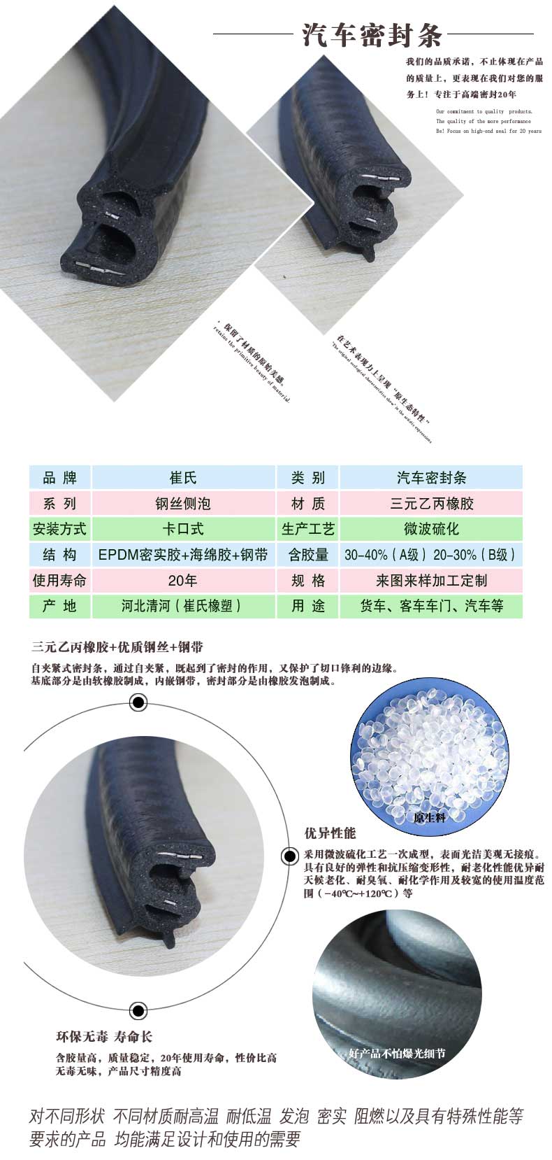 5 20年使用壽命,解決汽車密封條經常更換的麻煩。