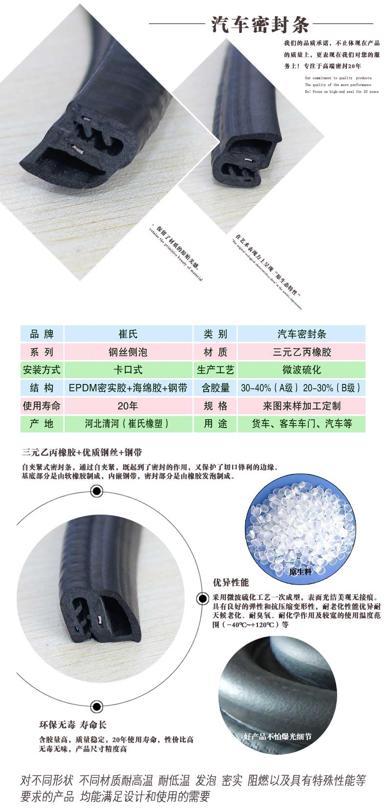 5 20年使用壽命,解決汽車密封條經(jīng)常更換的麻煩。