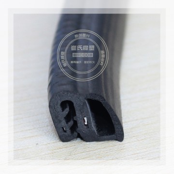 產(chǎn)品結(jié)構(gòu):門 框密封條不但要保證密封性,還要承受關(guān)門時的沖擊力,因此它既要有彈性,也要有韌性,主要由密實膠基體和海綿膠泡管兩部分組成。密實膠內(nèi)含有金屬骨架,起 到加強膠條的定型和固定作用。海綿膠泡管柔軟并富有彈性,起著受壓變形,卸壓反彈的功能。此外,有一些密封條的唇邊部分由彩色膠構(gòu)成或者貼有織物,色調(diào)美 觀有裝飾作用。