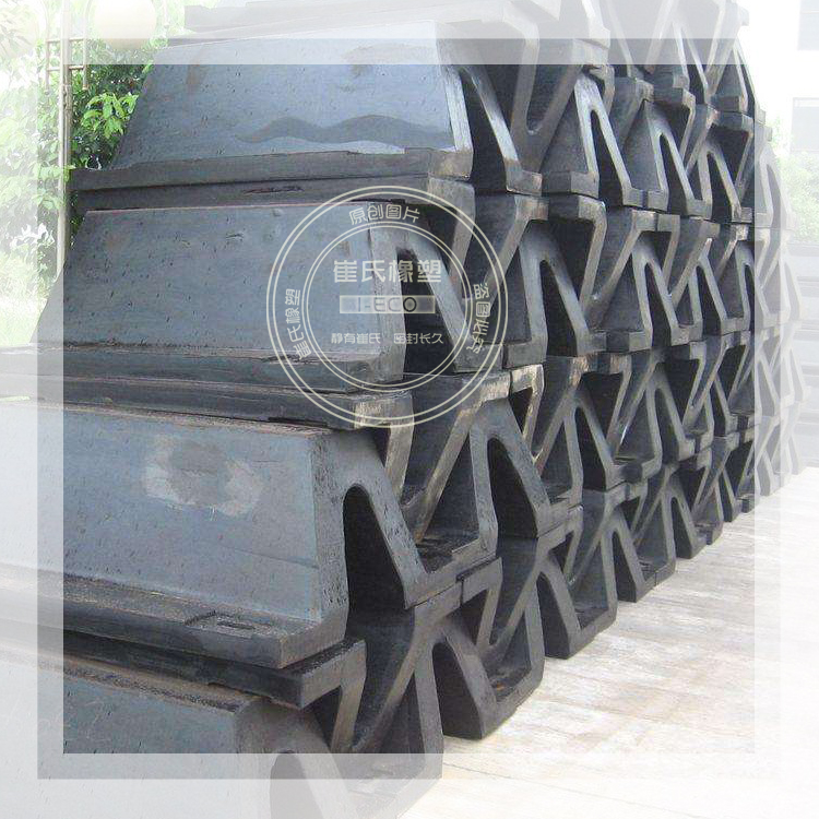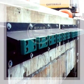橡膠護舷是在D型護舷基礎(chǔ)上開發(fā)的一種變形產(chǎn)品,原D型護舷為中間錨固,使用時容易造成護舷脫落。超級D型護舷為內(nèi)埋整體鋼板,雙排錨固,加之錨固螺栓加大,其錨固力比原D型護舷增大二位左右,使用表明,其錨固力滿足設(shè)計要求,受到設(shè)計和使用單位歡迎。