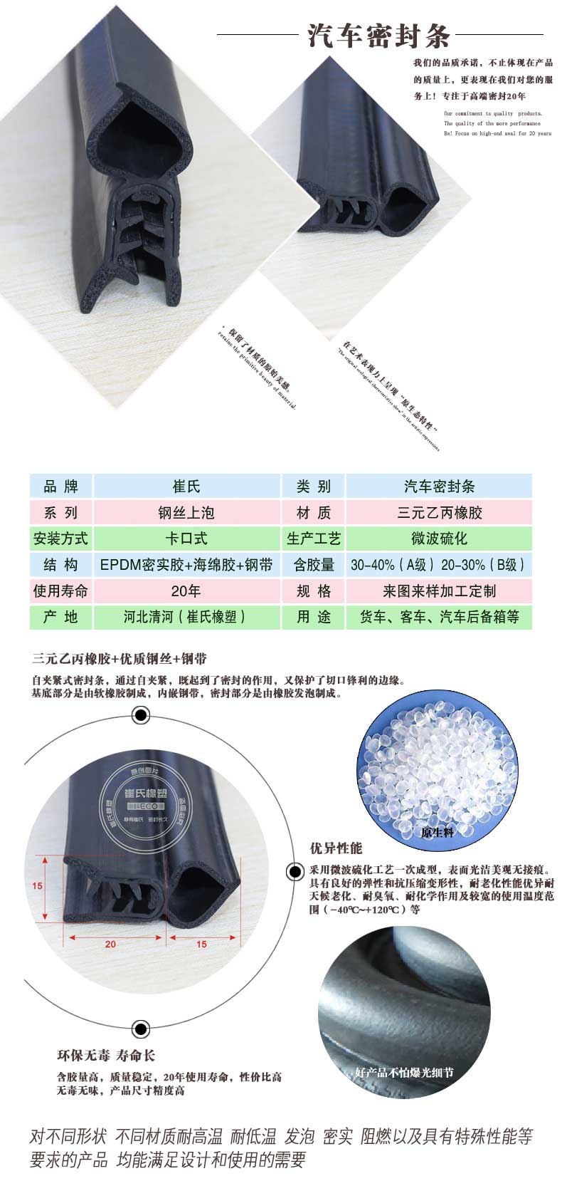 5 20年使用壽命,解決汽車密封條經常更換的麻煩。
